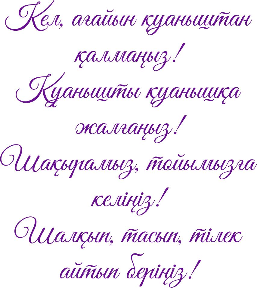 Тойға қатысуыңызды растауыңызды сұраймыз: